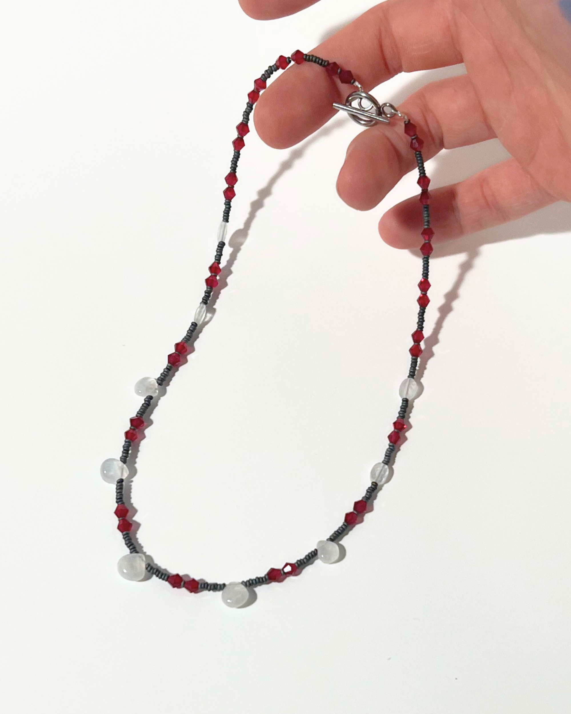 STORE › Necklace with Moonstone Image 1 of 1 Necklace with Moonstone $75.00 Handcrafted necklace with glass and moonstone beads. Pictured necklace measures 17”. Made in Dayton, Ohio with loooooove :). Length: 15” 16” 17” 18” 19” 20” Add To Cart Added! Handcrafted necklace with glass and moonstone beads. Pictured necklace measures 17”. Made in Dayton, Ohio with loooooove :).